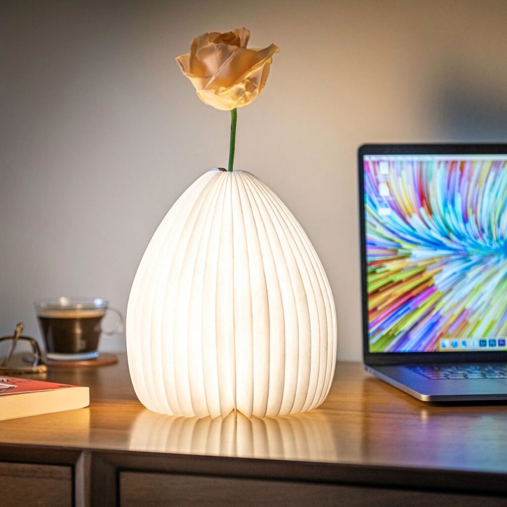 La Lampada Vaso Luce può essere posizionata in diversi ambienti della casa o studio/ufficio. Puoi riporla su un tavolino da soggiorno come su una credenza, oppure sul comodino in camera da letto. Le dimensioni ridotte permettono di adattarla ovunque e, grazie al design a ventola può essere ripiegata per essere riposta facilmente.